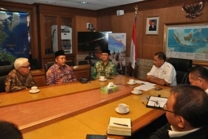 Ketua LDNU, Maman Imanulhaq, Pelukis Senior Sidiq M Martowidjojo, Founder NU Gallery Nabil Haroen, menemui Menteri Pariwisata RI (Kemenpar), Arief Yahya di Kantor Kemenpar, Jalan Merdeka Barat, Jakarta, Senin (3/10). Dalam pertemuan tersebut Menpar Arief Yahya mendukung pameran tersebut.
