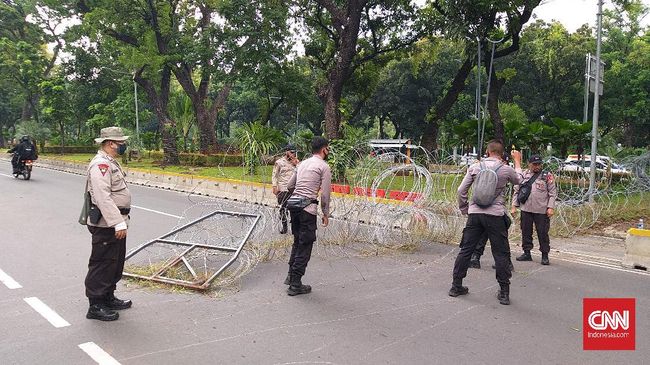 Jalan di sekitar Istana akan ditutup hari ini mengantisipasi demo menolak Omnibus Law Ciptaker. (CNN Indonesia/Dhio Faiz)