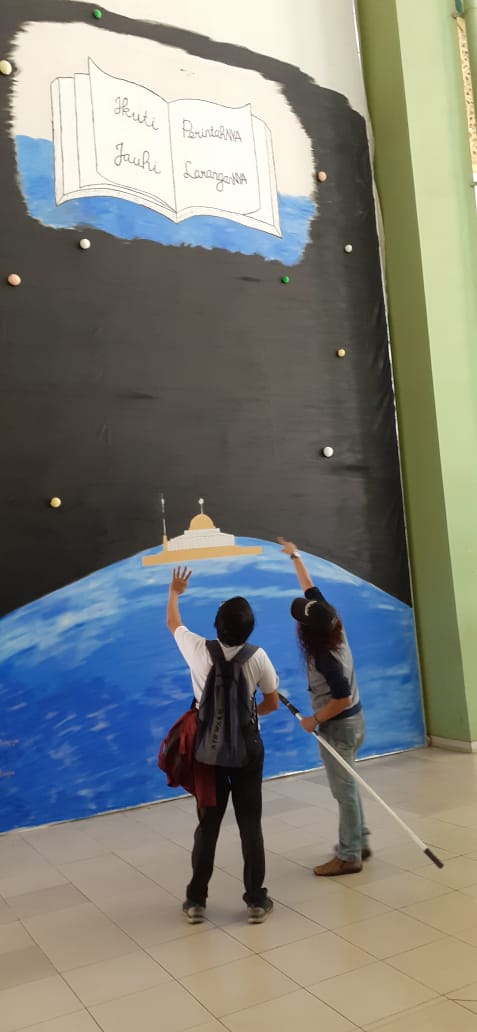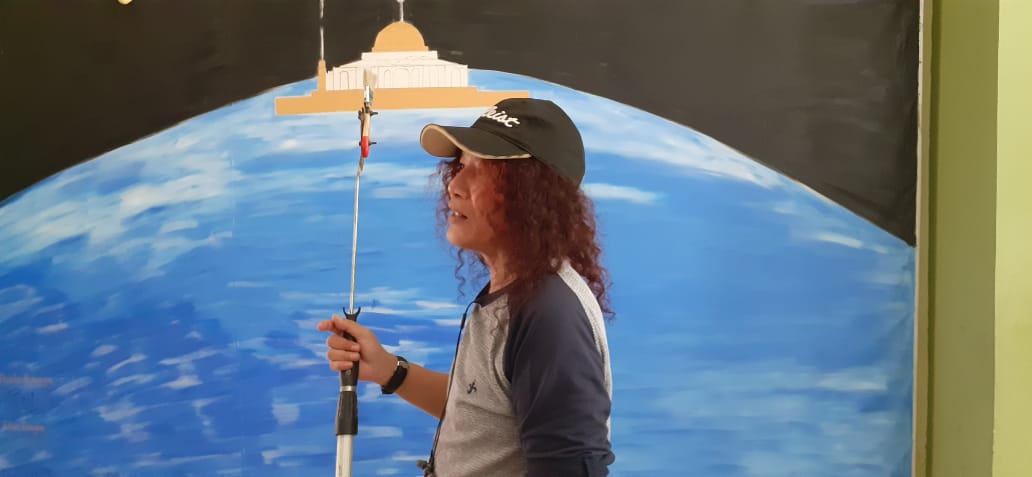 “Lukisan ini menggambarkan bagaimana membolong atau menembus langit. Kalau kita sholat dengan khusuk sampai meneteskan air mata maka air mata tersebut dapat memadamkan api neraka dan bisa menembus ke Sidrotul Muntaha” tandas pria berambut panjang asal NTT tersebut.