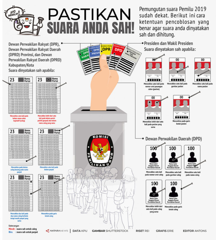 JIC, JAKARTA–Pemungutan suara Pemilu 2019 sudah dekat. Berikut ini cara ketentuan pencoblosan yang benar agar suara anda dinyatakan sah dan dihitung.