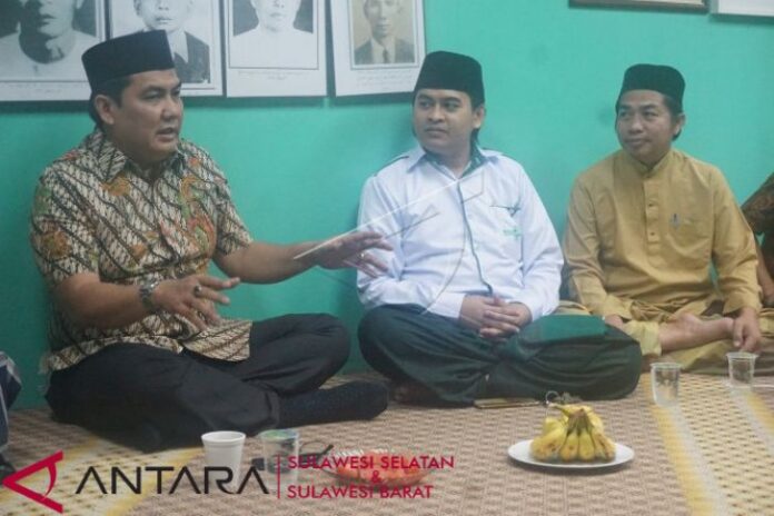 Sekjen Pengurus Besar Nahdlatul Ulama (PBNU) A Helmy Faishal Zaini (kiri) berbincang dengan Pimpinan Pondok Rumi Sufi Sungai Buloh Selangor Malaysia Ustadz Faiz Hafizuddin (tengah) dan Ketua PCINU Malaysia Ustadz Ihyaul Lazib (kanan) saat bertemu dengan para santri di Pondok Rumi Sufi di Kuala Lumpur, Malaysia, Senin (24/12/2018). (ANTARA FOTO/Agus Setiawan)