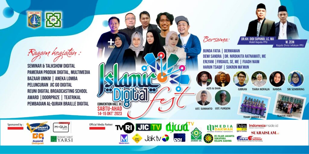 JIC– Pusat Pengkajian dan Pengembangan Islam Jakarta (PPIJ) atau Jakarta Islamic Centre kembali akan menggelar perhelatan akbar Islamic Digital Fest 2023 (DIGIFEST 2023) yang akan berlangsung pada tanggal 14-15 Oktober 2023.