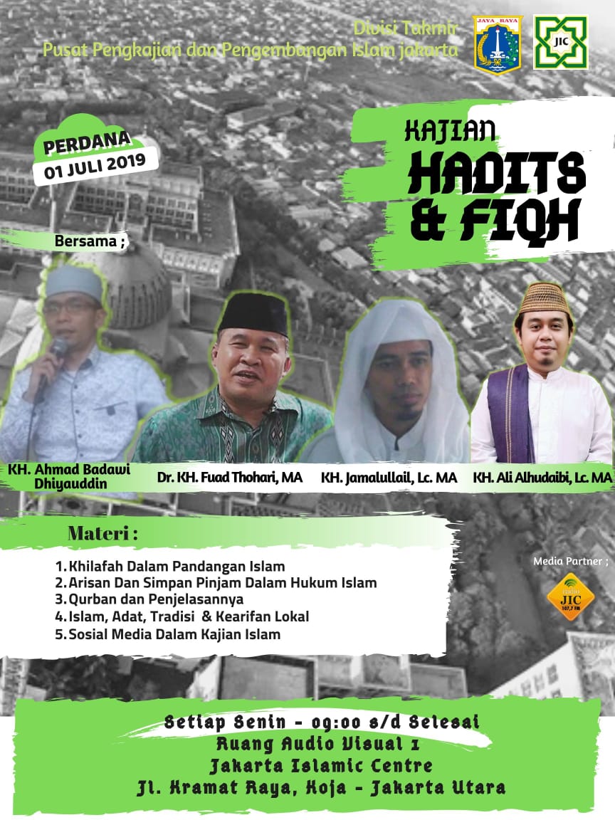 JIC – Hadiri dan ikutilah Kajian Hadits dan Fiqh yang inysa Allah akan diselenggarakan perdana pada :