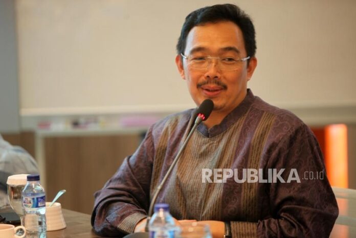 Anggota Dewan Pakar ICMI Muhammad Syafii Antonio memberikan paparanya saat acara Diskusi Dialektika ICMI di Kantor Pusat ICMI, Jakarta, Rabu (11/7). Foto: Republika/Mahmud Muhyidin