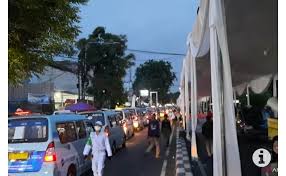 Antrean kendaraan melintas di Jalan KS Tubun, Petamburan, Jakarta Pusat mulai padat menjelang acara Maulid Nabi Muhammad SAW di kediaman Imam Besar FPI Rizieq Shihab, Sabtu (14/11/2020) ANTARA/Laily Rahmawaty.