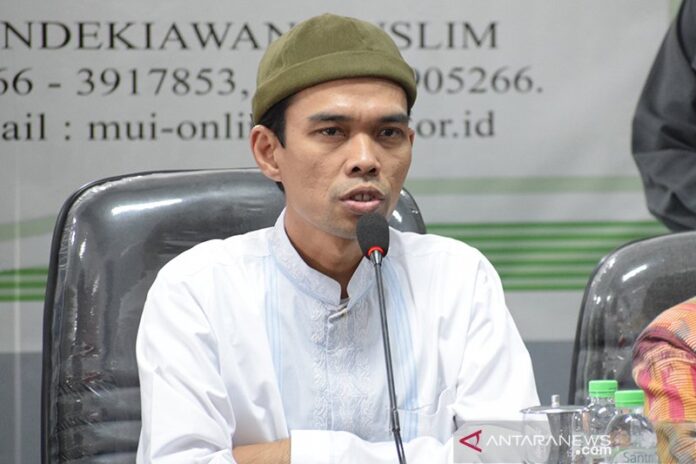 Ustadz Abdul Somad (kiri) dalam jumpa pers dengan Majelis Ulama Indonesia di Gedung MUI Pusat, Jakarta, Rabu (21/8/2019), tidak mempersoalkan pengajiannya direkam oleh jamaah meski materi kajiannya dalam bentuk digital itu justru dilaporkan ke polisi. ANTARA/Anom Prihantoro.