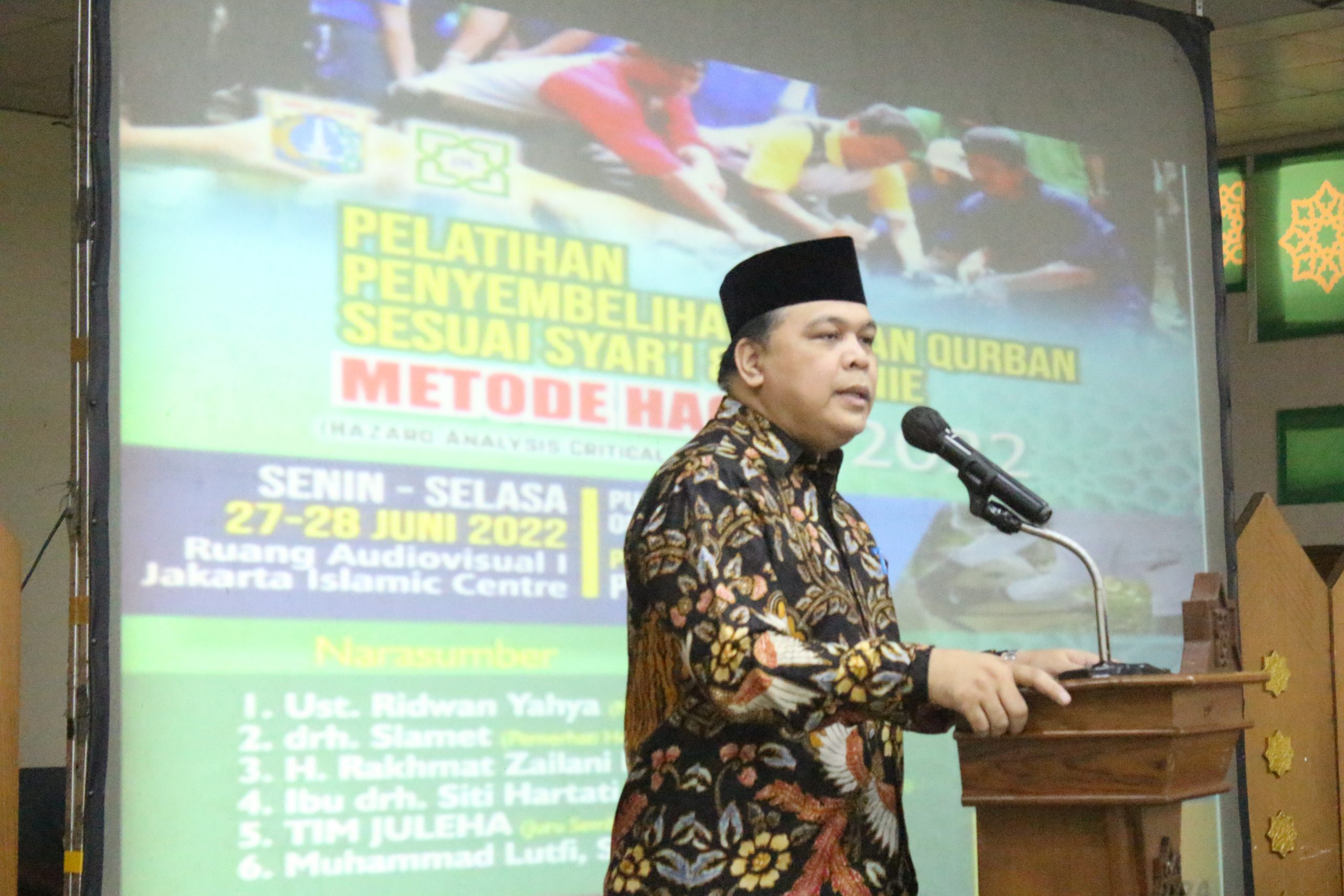JIC- Menyambut Idul Qurban 1443 Hijriah, Pusat Pengkajian dan Pengembangan Islam Jakarta (PPIJ) atau yang biasa disebut Jakarta Islamic Centre mengadakan pelatihan penyembelihan hewan qurban sesuai syariat dan higienis dengan menggunakan metode Hazard Analysis Critical Control Point (HACCP).