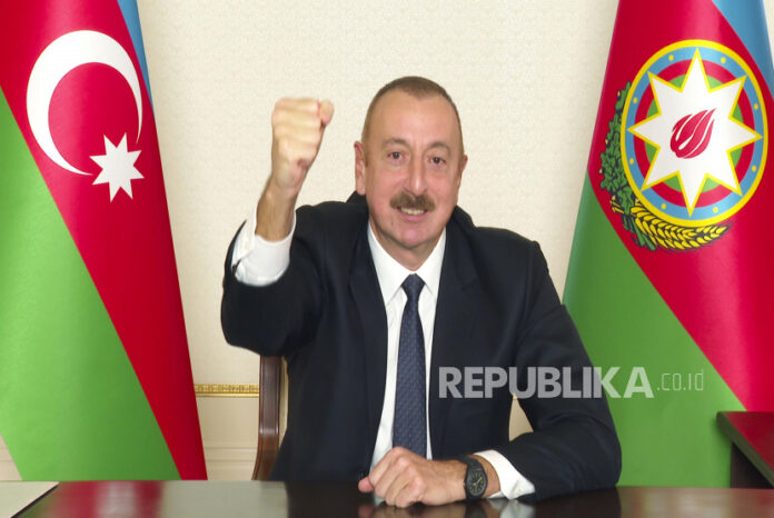 Presiden Azerbaijan, Ilham Aliyev, menyebut Armenia tak pelihara masjid. Foto: AP/Azerbaijan’s Presidential Press