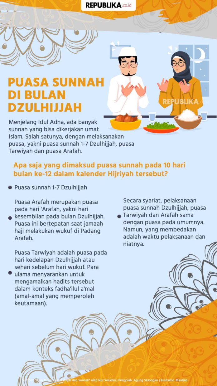 News UpdateDunia Islam PUASA SUNNAH DI BULAN DZULHIJJAH July 15, 2021 0 678 FacebookTwitterPinterestWhatsApp Menjelang Idul Adha, ada banyak sunnah yang bisa dikerjakan umat Islam. JIC, JAKARTA,– Sumber : Republika.co.id