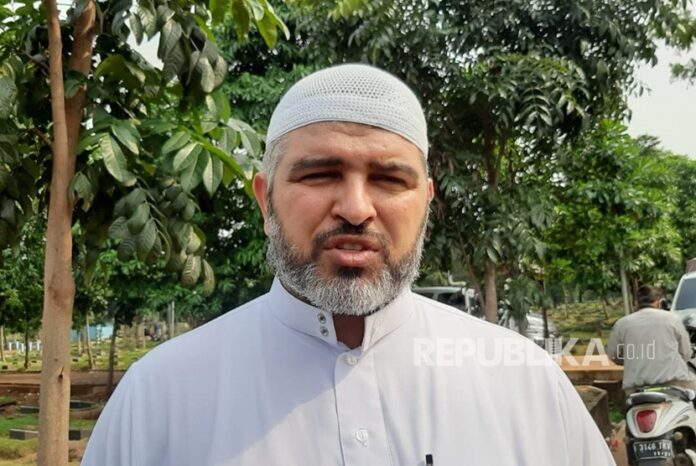 Presiden Asosiasi Diaspora Mahasiswa Palestina untuk Asia Tenggara, Ahed Abu Alatta, sedang menyampaikan ucapan belasungkawa atas meninggalnya dr Joserizal Jurnalis di TPU Pondok Rangon, Jakarta Timur, Senin (20/1). Dia mengatakan, rakyat Palestina ikut berduka atas kepergian Joserizal.          Foto: Republika/Febryan.A