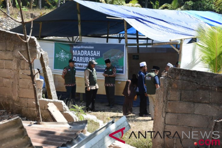 Ketua NU Care – Lazisnu Ahmad Sudrajat meninjau madrasah darurat yang didirikan relawan NU di Lombok Barat, NTB, Kamis (13/9/2018). (Junaedi)