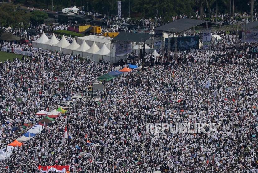 Suaana masa aksi 212 mengikuti reuni aksi 212 di Lapangan Monumen Nasional, Jakarta, Ahad, (2/12). Foto: Republika/Iman Firmansyah
