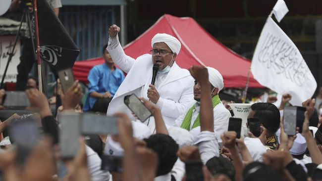 Imam Besar FPI Rizieq Shihab mengaku siap rekonsiliasi dan berdialog dengan pemerintah. (AP/Achmad Ibrahim)