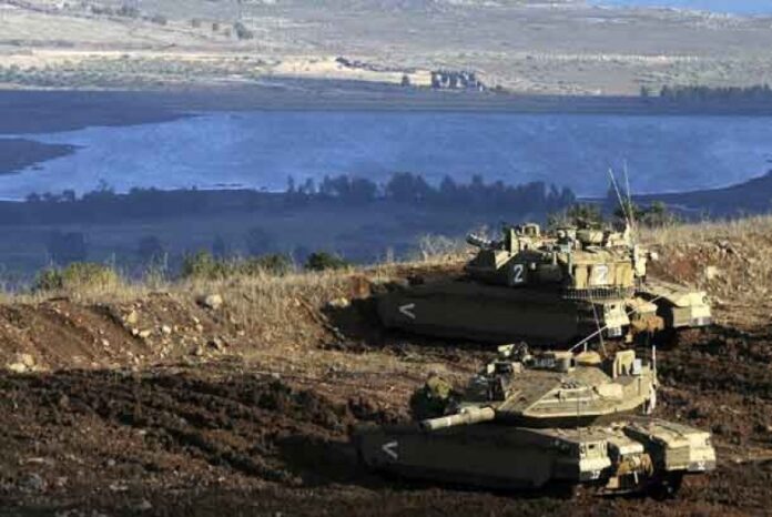 Tank-tank Israel dalam posisi menghadap sebuah desa Suriah dari Dataran Tinggi Golan yang dicaplok Israel.                                                                      Foto: Reuters/Avihu Shapira