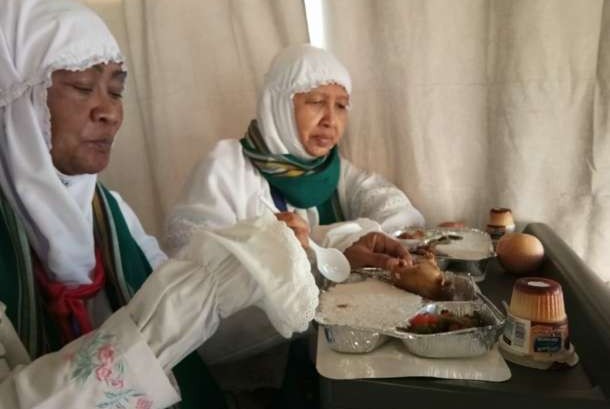 Sementara selama di Arafah dan tenda di Mina, ia hanya bisa makan nasi putih tanpa lauk yang didorong dengan air atau teh. “Ya lemes, Mas. Namanya juga hanya makan nasi,” kata dia.