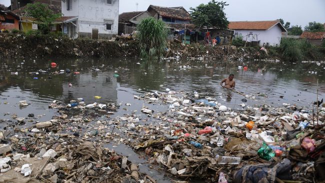 Terpantau pada Minggu (28/7), kotoran di Kali Bahagia Desa Bahagia, Kecamatan Babelan, itu didominasi sampah domestik, seperti plastik dan styrofoam.