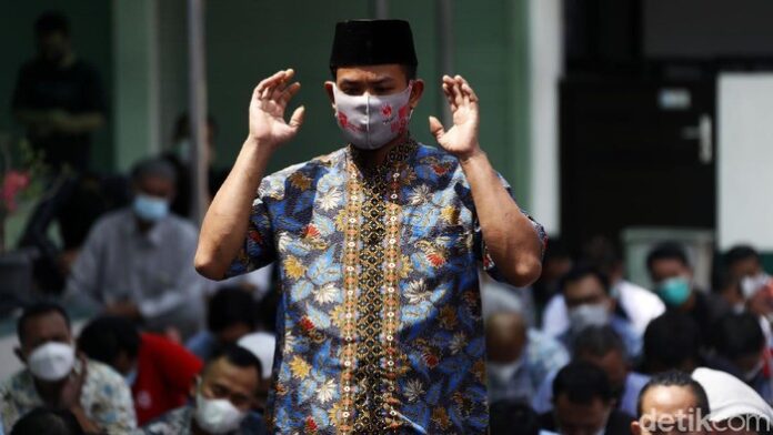 Foto: Kwgiatan salat berjamaah saat PPKM level 4 Rengga Sancaya