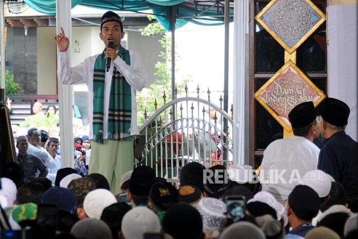 Ustaz Abdul Somad saat menyampaikan tausiyah di Masjid Al Muhajirin, Pondok Kopi, Jakarta, Ahad (25/2).                                                                                                                  Foto: