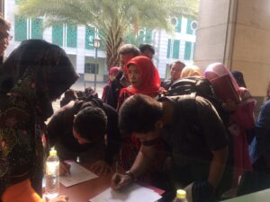 Anggota SLiMS Jakarta bersama Kepala Divisi Infokom (tengah) dan Kepala Perpustakaan JIC, Niswati Fatimah, S.IP (tengah pink)Foto Besama Seluruh Peserta Sinau Bareng Pustakawan Penjuru Nusantara