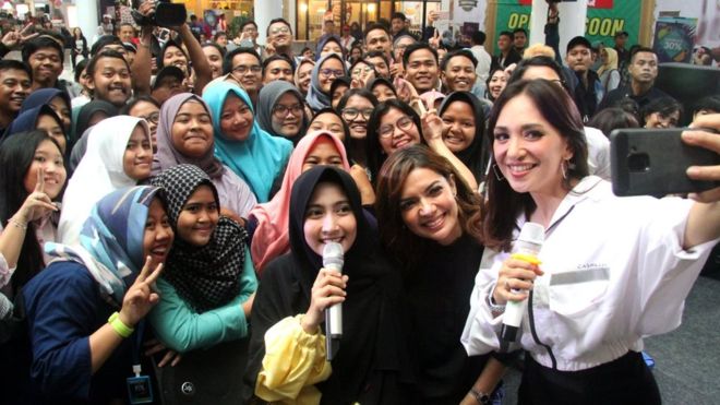 Image captionHasil exit poll yang dilakukan Litbang Kompas dan Indikator Politik menunjukkan lebih banyak perempuan yang memberikan suara untuk Jokowi dibanding untuk Prabowo.