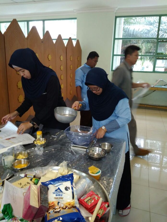 JIC – Sinergi kerjasama kembali terjalin antara Jakarta Islamic Centre (JIC) dengan PT Bogasari (14/11). Kali ini mempraktekkan kembali materi cooking class beberapa waktu lalu yang diselenggarakan oleh pabrik yang terkenal dengan tepung segitiga biru itu. Makanan ringan ini pas sekali disantap bersama teh hangat atau secangkir kopi ditemani bincang akrab bersama pasangan halal atau rekan kerja. Donat dan roti menjadi pilihan utama yang disajikan oleh Demawati, Niswati Fatimah dan Hanny F yang merupakan Pegawai JIC yang telah menyerap ilmu dari PT Bogasari.