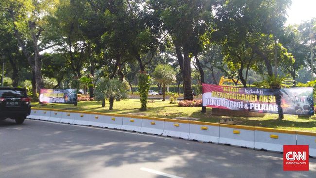 Jakarta, JIC — Spanduk berisi tudingan bahwa Koalisi Aksi Menyelamatkan Indonesia (KAMI) berada di balik aksi demonstrasi menolak Omnibus Law UU Cipta Kerja terpasang di sejumlah titik di Jalan Medan Merdeka Barat, Jakarta Pusat. Kalimat dalam spanduk itu berbunyi ‘KAMI terbukti menunggangi aksi demo buruh dan pelajar’.Pantauan CNNIndonesia.com, tidak hanya satu spanduk yang terpasang. Spanduk-spanduk tersebut diletakkan di area taman yang berada di tengah-tengah Jalan Medan Merdeka Barat. Diketahui, elemen buruh juga akan berunjuk rasa pada hari ini, Senin (12/10).