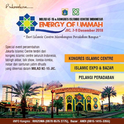 JIC – Dalam kerangka memperkaya strategi pengembangan fungsi serta memperkuat kerja-kerja peradaban berbasis Islamic Centre untuk menjawab tantangan nasional dan global, maka dirasa perlu dilakukan silaturrahmi pengelola Islamic Centre Indonesia dalam sebuah wadah KONGRES ISLAMIC CENTRE INDONESIA.