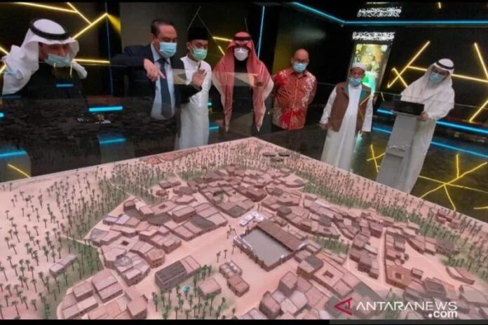 Ketua Yayasan Museum Nabi Muhammad Komjen Pol. Purn. Syafruddin mengagumi Museum Sejarah Nabi Muhammad saw. yang baru buka di pelataran Masjid Nabawi, Madinah, Arab Saudi, Selasa (4/1) waktu setempat.