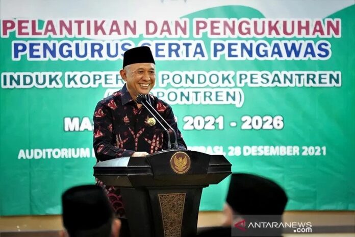Menteri Koperasi dan UKM Teten Masduki alam pengukuhan pengurus dan pengawas induk Kopontren/Inkopontren periode 2021-2026, Jakarta, Selasa (27/12/2021). ANTARA/HO-KemenkopUKM/pri.