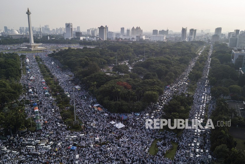 Sementara di seantero lokasi aksi, suasana tertib memang tampak. Dari pantauan Republika, tidak tampak banyak aparat berseragam yang melakukan penjagaan ekstra di luar Monas. Sesekali tampak polisi lalu lintas turut mengarahkan massa untuk mencari jalan keluar untuk pulang, maupun massa yang baru datang ke lokasi.