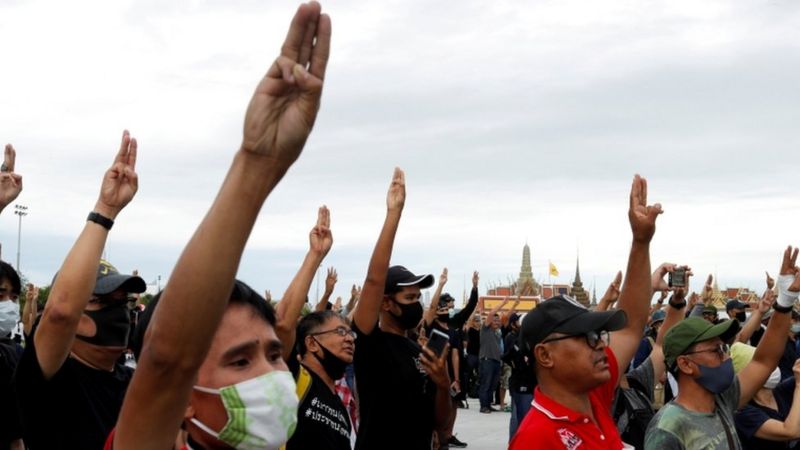 Para pengunjuk rasa telah menyerukan pembatasan kekuasaan raja dan pengunduran diri Perdana Menteri Prayuth Chan-ocha.