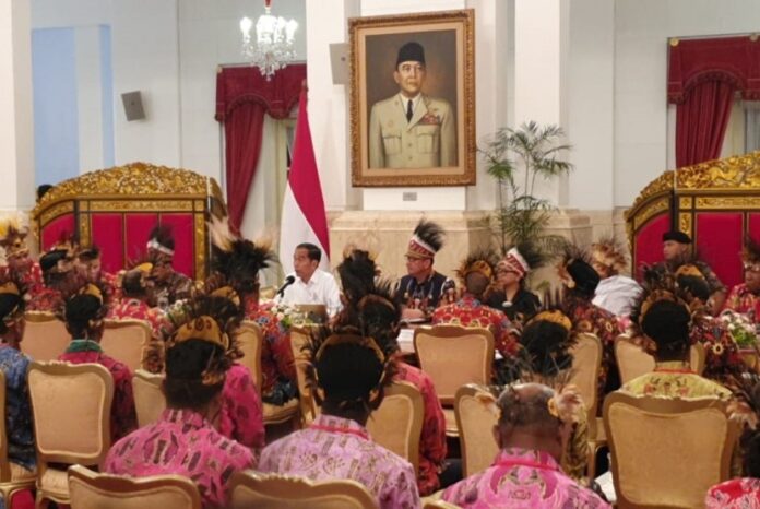 JIC, JAKARTA — Presiden Joko Widodo (Jokowi) menerima 61 tokoh Papua dan Papua Barat di Istana Negara, Jakarta, Selasa (10/9). Dalam pertemuan ini, Ketua DPRD Jayapura Abisai Rollo yang juga ketua rombongan pun menyampaikan sembilan poin permintaan masyarakat Papua dan Papua Barat kepada Jokowi.