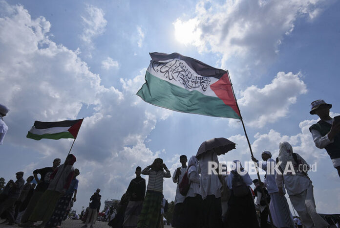 JIC, JAKARTA — Ribuan umat Islam Indonesia mengikuti Aksi Solidaritas Bela Baitul Maqdis Palestina atau Aksi 115 di lapangan Monas, Jakarta, Jumat (11/5). Umat Islam menggelar aksi ini dengan damai dan menyampaikan beberapa tuntutan aksi.