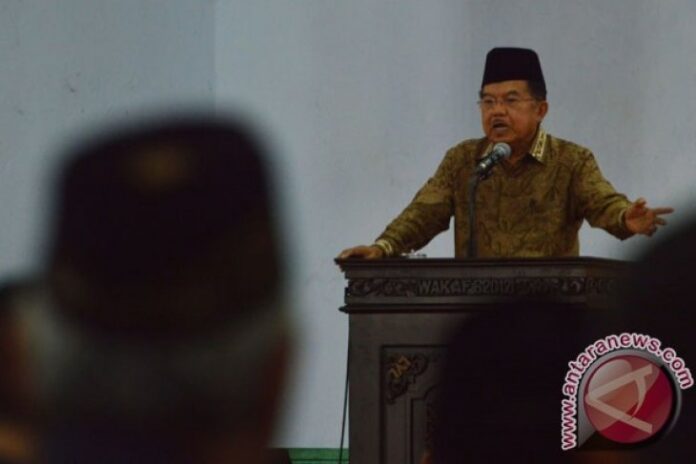 Kunjungan Wapres Ke Gontor Wakil Presiden RI Jusuf Kalla menyampaikan sambutan di gedung pertemuan Pondok Modern Darussalam Gontor, Ponorogo, Jawa Timur, Sabtu (20/8/2016). Kehadiran Wakil Presiden Jusuf Kalla di Gontor dalam rangka sujud syukur 90 tahun Pondok Modern Darussalam Gontor, penandatanganan prasasti dan peletakan batu pertama pembangunan asrama mahasiswa Universitas Darussalam (Unida) Gontor. (ANTARA/Siswowidodo)