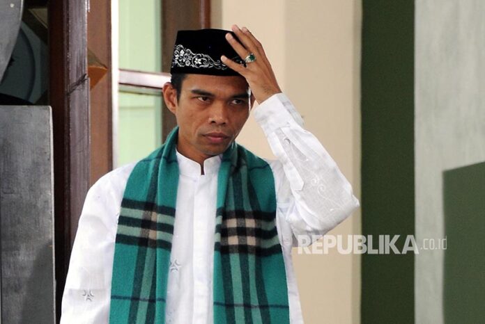 Ustadz Abdul Somad menghadiri kegiatan tausiyah di Masjid Al Muhajirin, Pondok Kopi, Jakarta, Ahad (25/2). Tausiyah yang diselenggarakan dalam rangka Tabligh Akbar dengan tema Ikhlas tersebut diikuti oleh ratusan jamaah. Republika/Putra M. Akbar