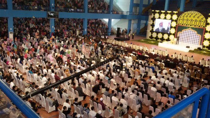 Public lecture Dr.Zakir Naik di UMY sendiri diikuti ribuan orang. Gedung sportorium UMY yang berkapasitas 6 ribuan orang penuh.